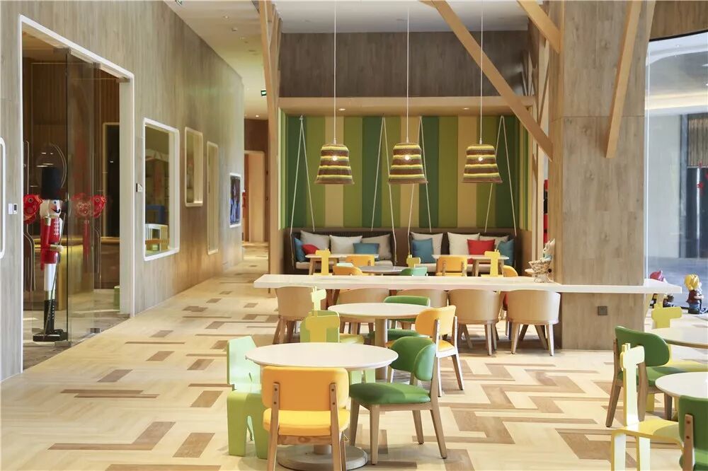 酒店還有一個獨具特色的趣兒童餐廳,就連桌椅也被設計成适合小朋友高度的可愛造型,再也不用擔心小朋友不乖乖吃飯了!除了吃飯,這裡還有小廚房能讓小朋友們體驗各類趣味生動的廚藝。
