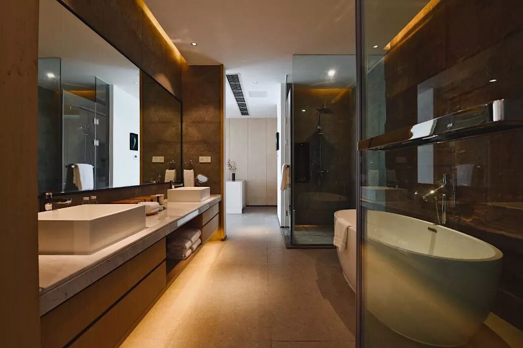 電動窗簾不必動手,星空銀河近在眼前;來自德國高端品牌漢斯格雅的龍頭花灑還有方便的電動馬桶,讓假期品質再上一個等級;想要放松身體的,房内的實木浴缸就能泡一個喚醒每個細胞的澡……
