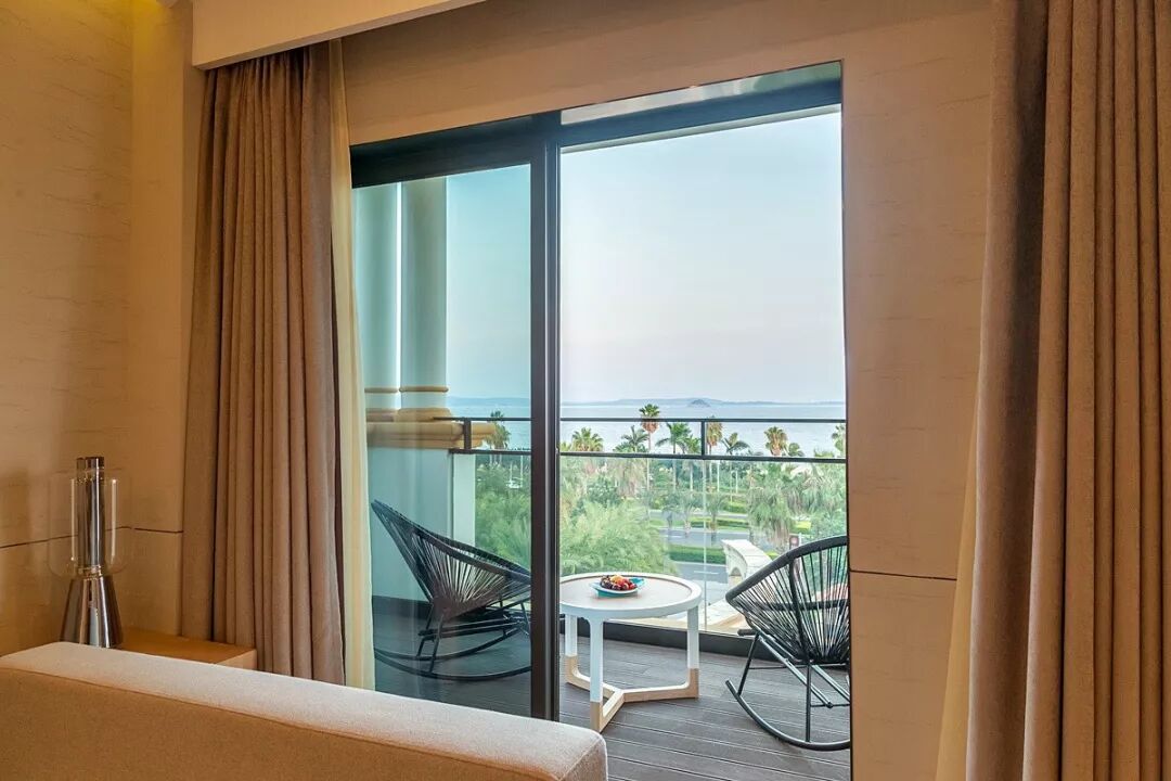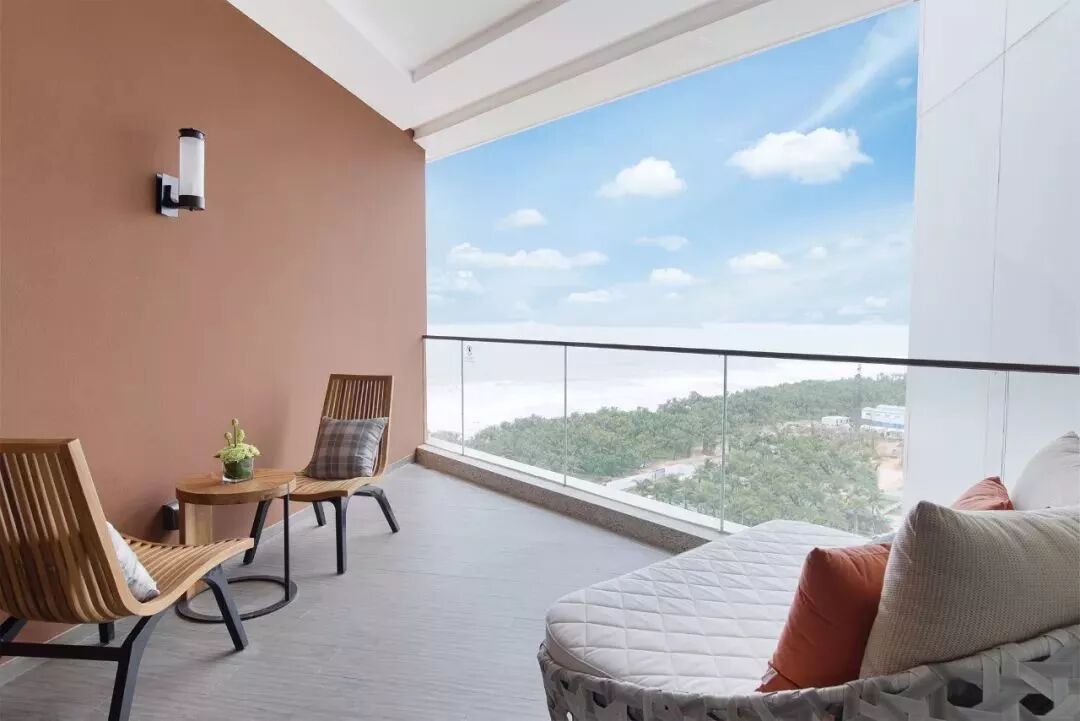 一打開房門,寬闊的海景撲面而來,心情都明亮了起來。配置至少 10平的超大的陽台更是讓人忍不住感歎這家皇冠假日空間的奢侈感,陽台上放置了沙發和桌椅。躺在柔軟的沙發上,望着沙淨水清的海棠灣發發呆,實屬人生一大樂事!