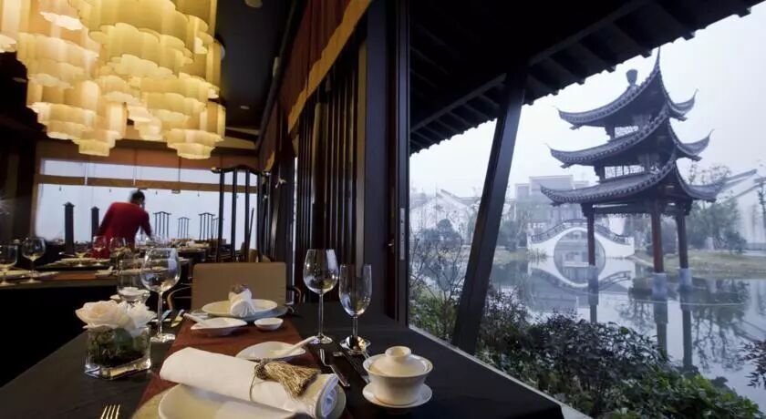 悅榕莊白雲中餐廳的環境是整個度假村裡最精緻的一處。可以提前預訂湖邊的室外餐桌,秀色可餐!這裡的杭幫菜也是确定正宗,東坡肉、小籠包、龍井蝦仁、宋嫂魚羹、醉雞、濕地三鮮,這裡涵蓋了來杭州必須體驗的所有美食。
