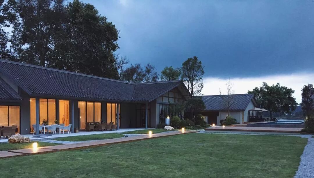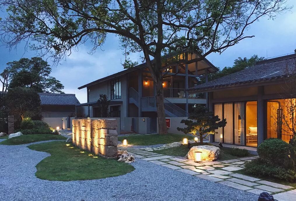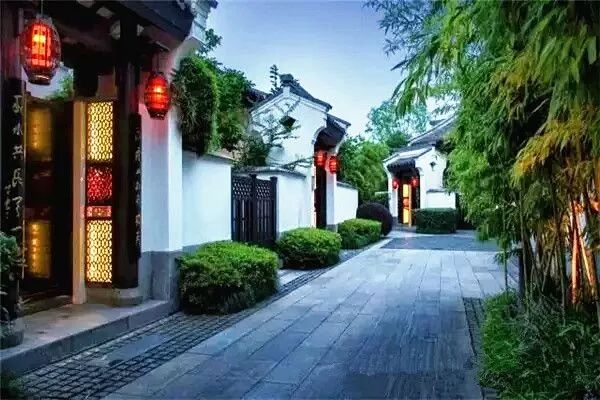 依勢築院,借水造景,客房區其實是一座座獨立而成的精緻小院,巧妙地分布在水系的周邊。這裡的建築都是杭州民居的傳統樣式,棱角筆直,造型嚴格精确,整棟房子通常隻有兩種主色,黑瓦白牆,隻是在門口的屋檐下,懸挂着兩個大紅燈籠。傍晚時分,走在一個個小院之間的石闆小路上,仿佛覺得自己好像是走進了一個遺世獨立的江南小鎮,回到了舊時光。