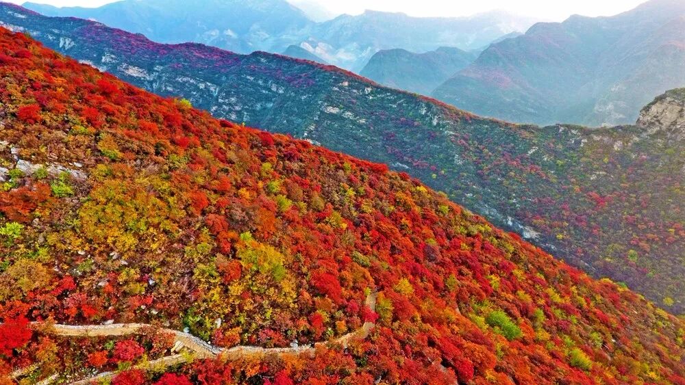 秋天的房山坡峰嶺景區,紅葉有黃栌、元寶楓、火炬等七八個品種、數十萬株。坡峰嶺海拔不足700m,一路石階極易攀爬,從紅葉房信步走出,俯仰間就都是坡峰嶺的無邊黃栌海,不知不覺間,便收獲了最美的風景。