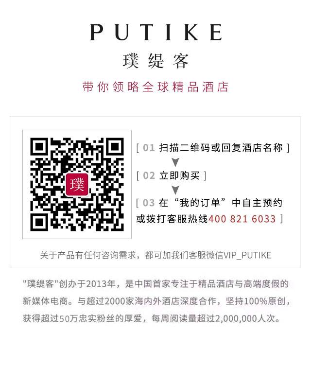 預定璞缇客的錯峰套餐,可享水悅别墅1晚;每日雙人自助早餐,以及白雲餐廳雙人套餐1份(午餐或晚餐均可使用)。