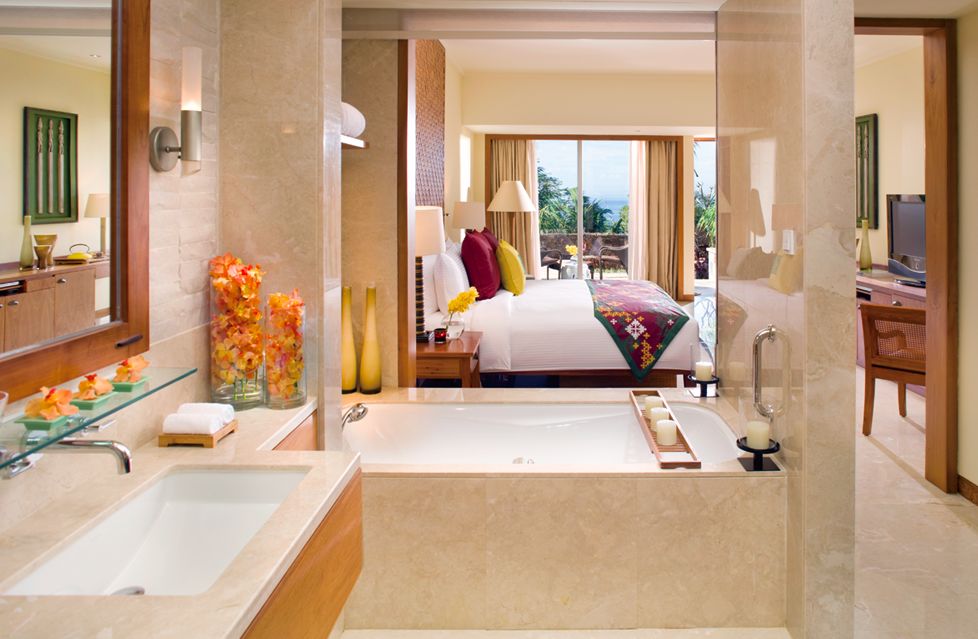 室内的寬大浴室配有超大浴缸、步入式淋浴間和雅緻的雙梳妝盥洗盆,給人一種身處水療中心的美妙感受。大陽台配有一張帶軟墊的躺椅,是消磨午後時光的悠閑好去處。值得一提的是,所有房間都均配有寬敞私密的露天平台或陽台哦。