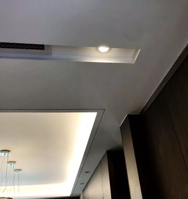 ⑦吊頂:藏着中央空調和中央新風出風口,出風口格栅均為定制。在吊頂和牆面之間做了一圈凹槽,避免石膏闆和壁紙兩種材質之間日後可能會産生的裂縫。