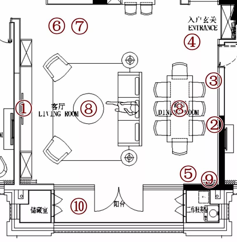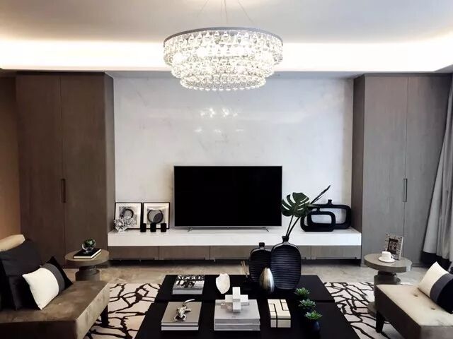 ⑧照明:燈口預留位置很講究,真正從居住舒适度與人體互動方面考慮,都是先考慮好家具的位置才設計燈口的位置。餐廳吊燈正好垂在餐桌上方,客廳吊燈也正好垂在茶幾上方,休閑區基本沒有燈光直射眼睛。
