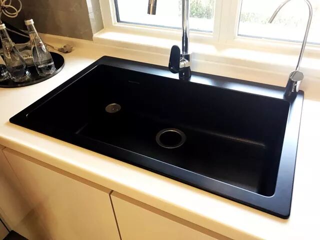 ②花崗岩水槽及優質龍頭:德國漢斯格雅或同級别品牌,大單盆,純天然材質沒有輻射及毒性,一次成型質地堅硬,耐酸堿、耐腐蝕、耐磨、耐高溫。網上有一段視頻,用手槍近距離射擊做抗沖擊測試,子彈劃過連痕迹都不留。