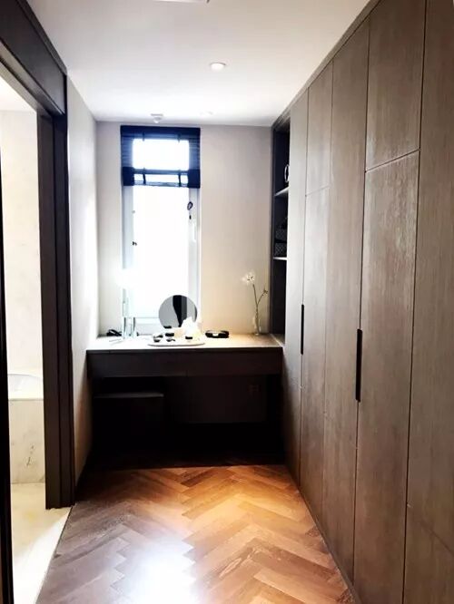 ②梳妝台:獨立衣帽間帶采光窗,窗前的位置預留了梳妝台。女主人所有的首飾、手表、飾品、化妝品等等,都可以放置在此。