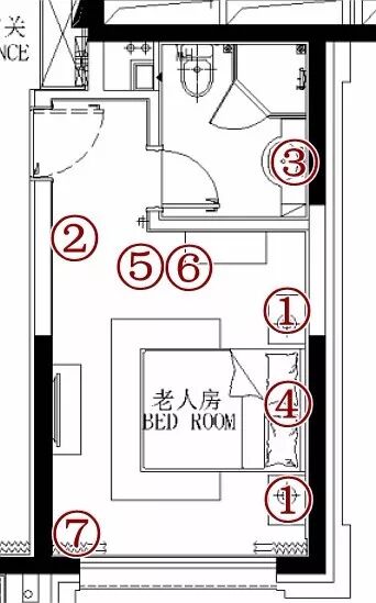 ②小夜燈:房間門口距地20公分設置感應式小夜燈,老人起夜更加安全。